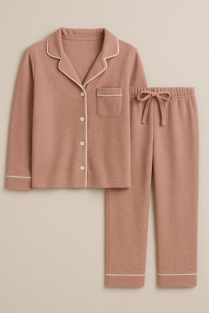 This premium PJ set is made from 95% viscose from bamboo, giving it a buttery-soft feel, moisture-wicking performance, and an elegant drape. Perfect for women who like soft, breathable sleepwear year-round.