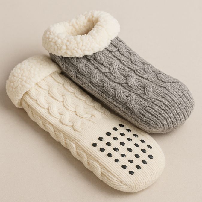 Cozylook 2-Pair Sherpa-Lined Slipper Socks (with Grippers)
